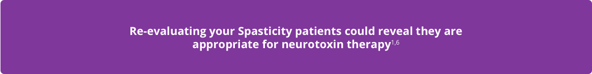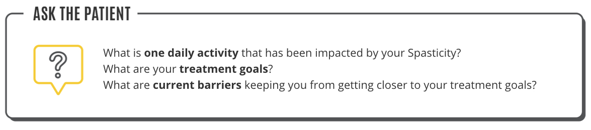 • Continually monitor potential triggers and signs/symptoms to help recognize Adult Spasticity quickly and efficiently3-5