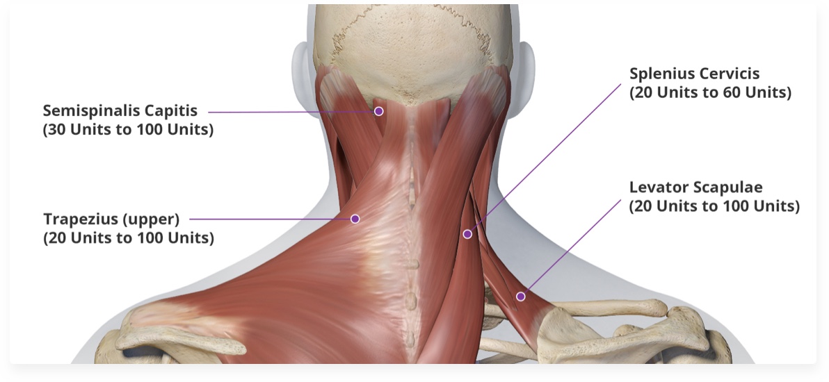 Approved muscles primarily involved in Cervical Dystonia1,3