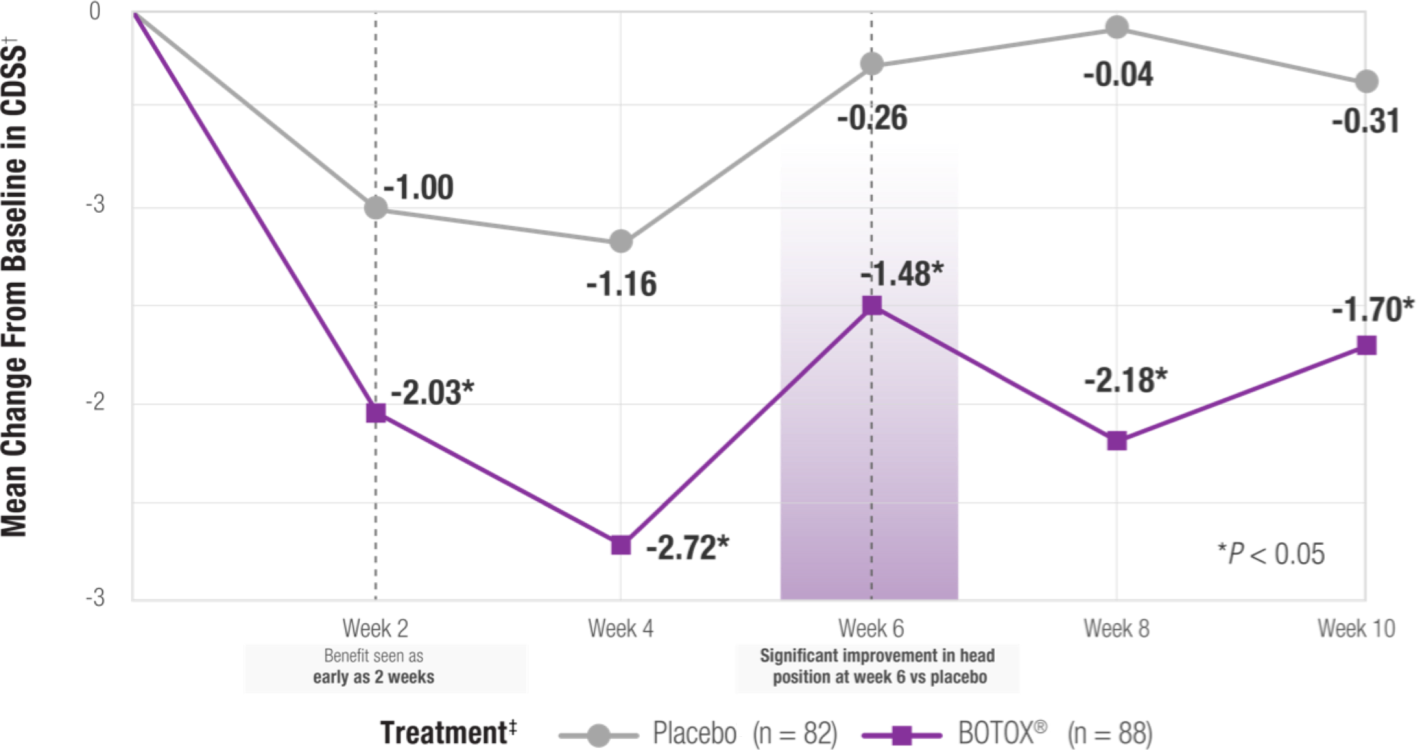 Chart describing head position change over 10 weeks while being treated with BOTOX®