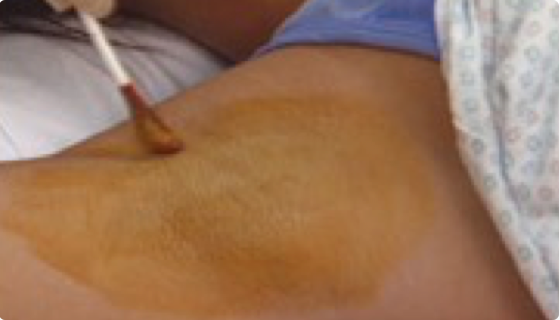 Dry affected axilla. Then immediately paint axilla with iodine solution, making sure to cover excess area around axilla. Allow iodine to dry.