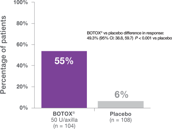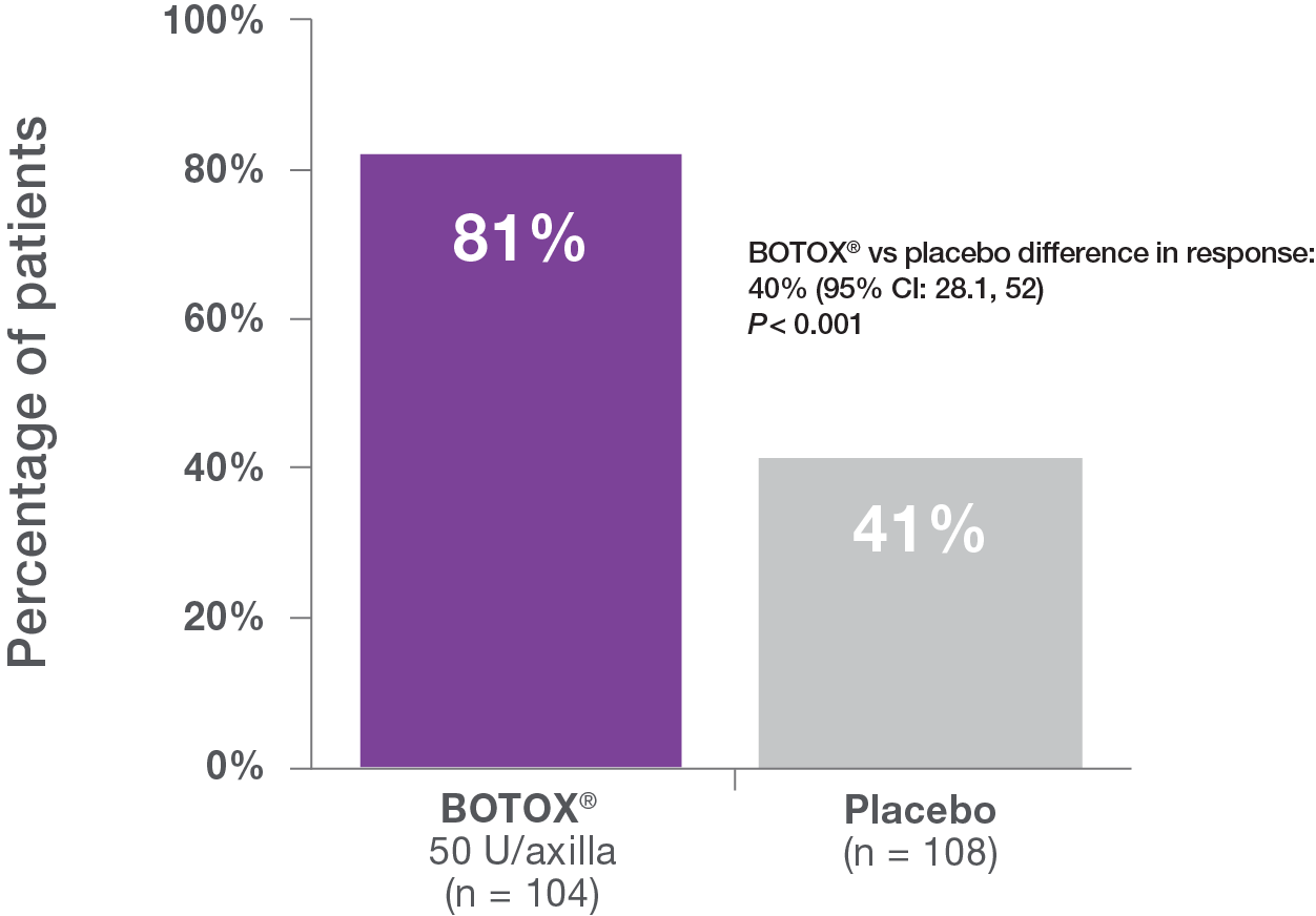 BOTOX® efficacy was shown in the majority of patients with severe primary axillary hyperhidrosis1